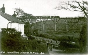 Some trains arriving in Truro from Paddington had as many as 15 coaches which, when stopped at the platform, stretched out across Carvedras Viaduct. Such trains were a heavy load and needed the assistance of another engine on the rear (‘banking’) to push them up the slope towards Highertown Bridge.