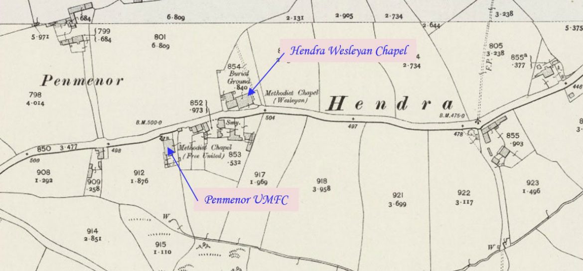 1865: Penmennor United Methodist Free Church opened when the congregation split from the Wesleyan Church at Hendra.