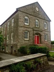 United Free Methodist chapel with integral schoolroom. Built of dressed granite and granite rubble; slate roof. Pedimented front: original paired doors within pedimented porch; mid-floor string course and original sash windows (also to other elevations). Interior has full gallery and original grained box pews, good ceiling rose. One of only 3 surviving larger chapels in Cornwall where the original arrangement with free seating survives at the sides (now with later pews) on the ground floor. Original fittings also in basement schoolroom. Good forecourt walls and gate-piers. Good complete and unaltered example and the subject of a recent (2001) repair programme. Listed in Stell (b1). (Cornwall Council Heritage Gateway)