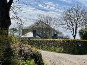 The Cornwall Heritage Gateway has this to say about the building: “Baptist chapel now farm building. Circa 1830. Killas rubble with elvan quoins, jamb stones and voussoirs. Hipped corrugated iron roof originally scantle slate. Rectangular plan with wide entrance to east. Later entrance and porch to middle of north wall. Wide doorway to east side with flat arch fallen. 2-window openings to north, south and west sides each with flat arches. North side has gable ended brick porch and blocked. Later entrance to far right. Interior gutted but retains king post roof structure. This is the first Baptist chapel to be built in Cornwall.”