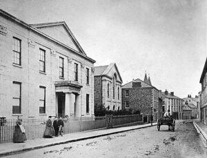 The Cornwall Heritage Gateway has this to say about the building: “A former Baptist chapel constructed between 1848 and 1850, in a classical style to a design by Philip Sambell. They moved to this building upon its completion in 1850. Since 1986 it has been used by the Royal Institute of Cornwall. The building is described as having a granite ashlar front, and Delabole slate roof with pediments at the front. It is a two-storey building, with a rectangular aisleless plan, formerly with gallery on 3 sides now divided into 2 floors, former schoolroom at rear added in 1867.”