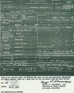 John Oliver’s death certificate